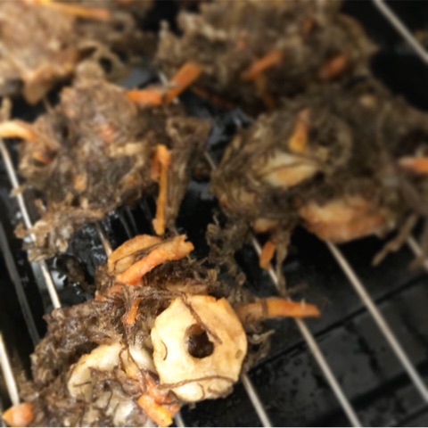 少し手間をかけて、もずくのてんぷらにしてみました。