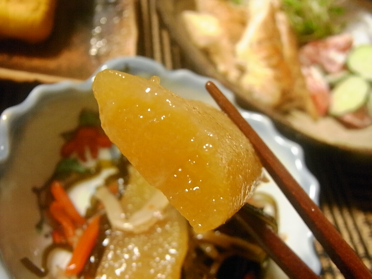 薄味とあったのでもっと薄いイメージだったのですが、しっかりすべての材料に味が中までしみ込んでいる感じです。