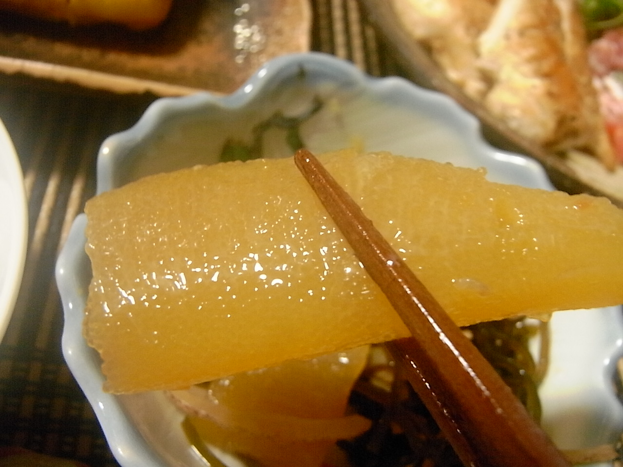 するめいかと昆布の出汁が全部に染み出てて、あまじょっぱい味なのですが…
