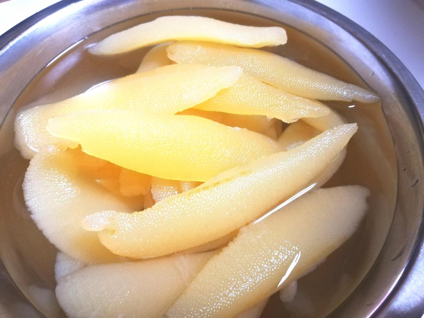 塩を抜いて膜をむいたらめっちゃ美しい黄色に✩.*˚