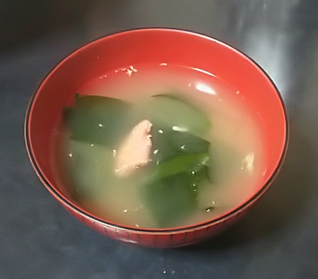 ④明太子と卵とわかめの味噌汁