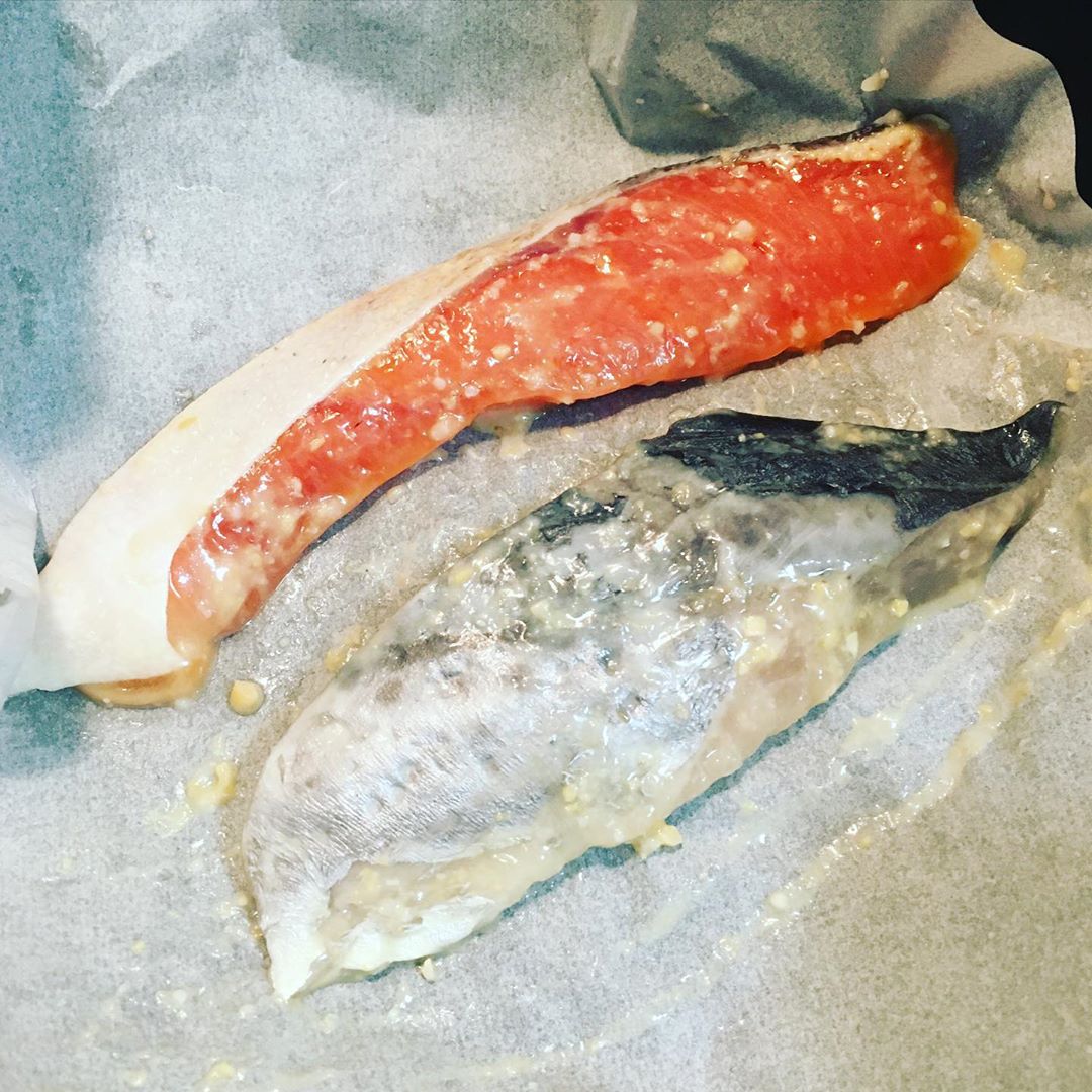 西京漬のタレに漬かった魚、トラウトサーモンと銀ひらすとさわらの3種類がそれぞれ2切れづつ、計6切れが入っています^ ^