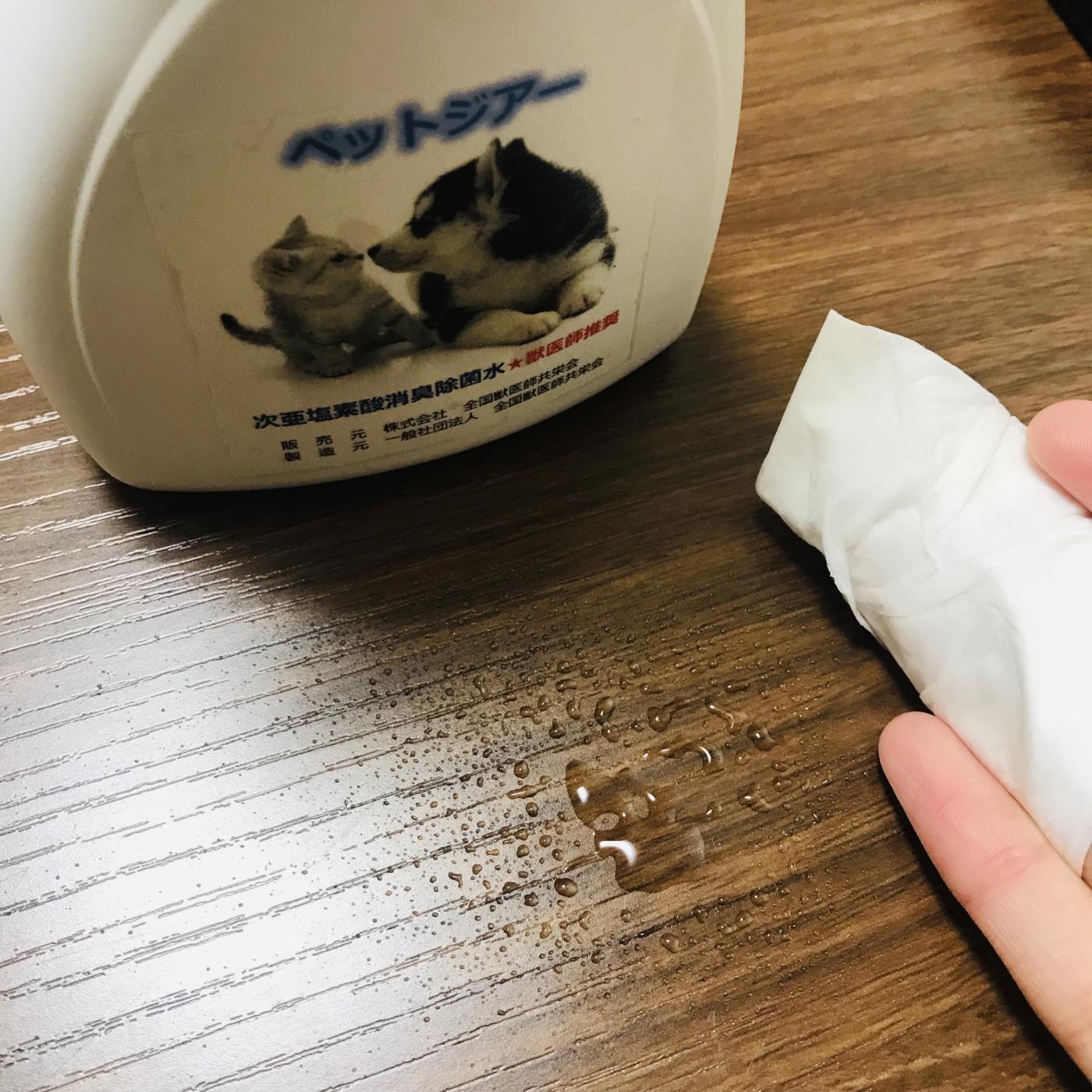 業務用として使用されている次亜塩素酸電解水消臭抗菌水を獣医師推奨のもとペット用として販売しているそうで、販売元も製造元も全国獣医師共栄会という点も安心感がありますね。