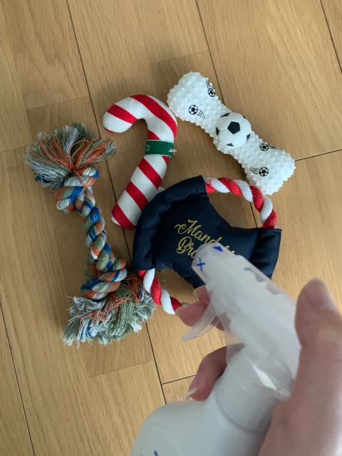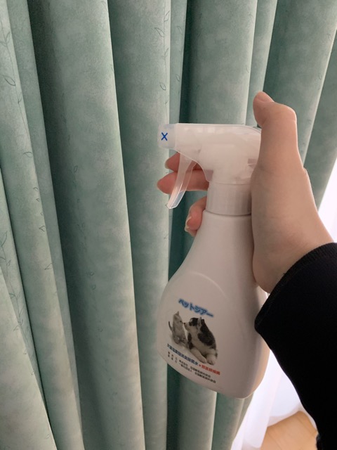あと、うちのワンコはリビングのカーテンが好きでよくスリスリしているのでカーテンにも毎日スプレーしています。