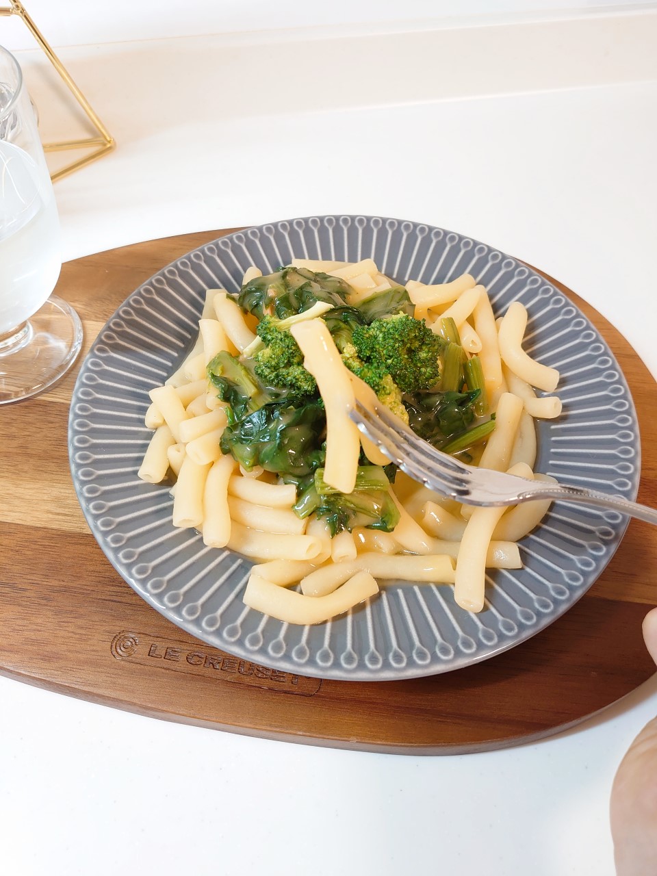 クリームパスタはホワイトソースにほうれん草とブロッコリーをトッピング。