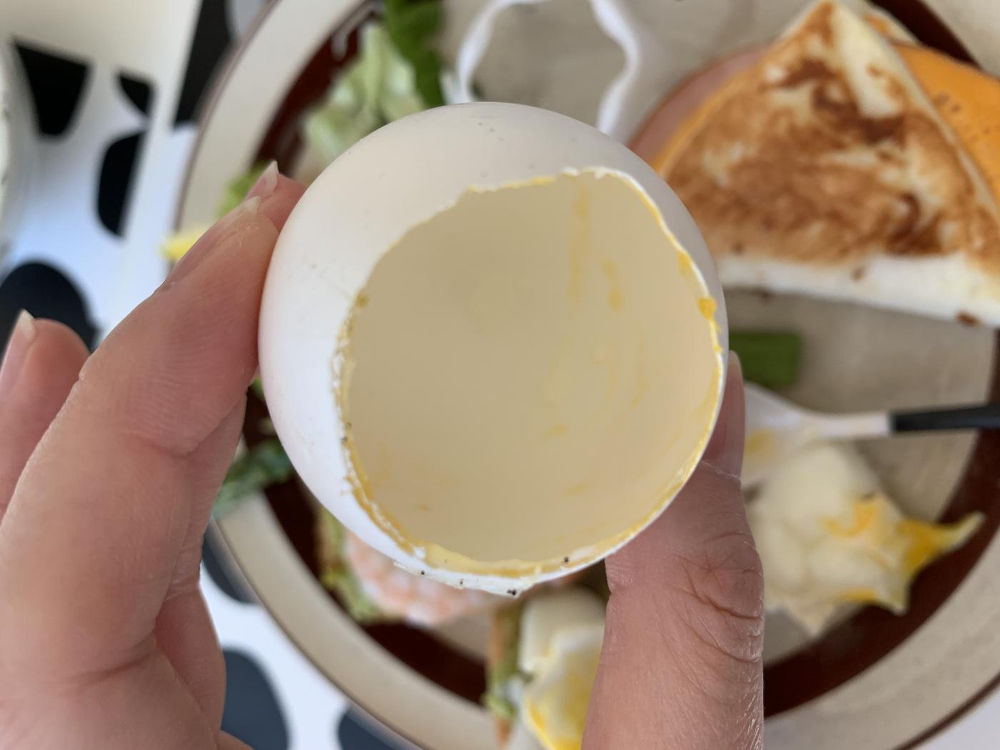 半熟卵は殻をキレイに剥くのは難しいのでとてもいいですね!スプーンもちょうどいい大きさで、穴を開けた卵の中身を上手に食べる事ができましたよ。