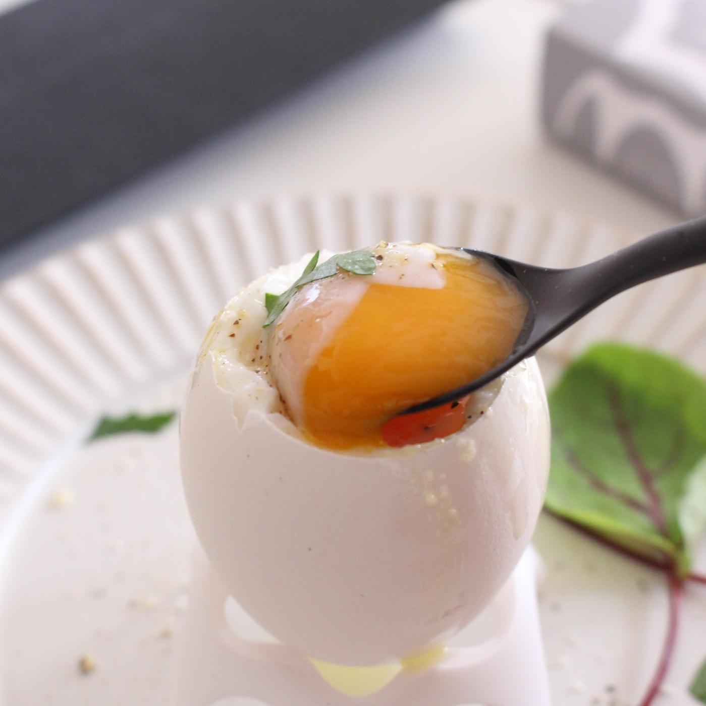 半熟卵を作って、エッグシェルカッターで卵の殻に穴をあけてみました!