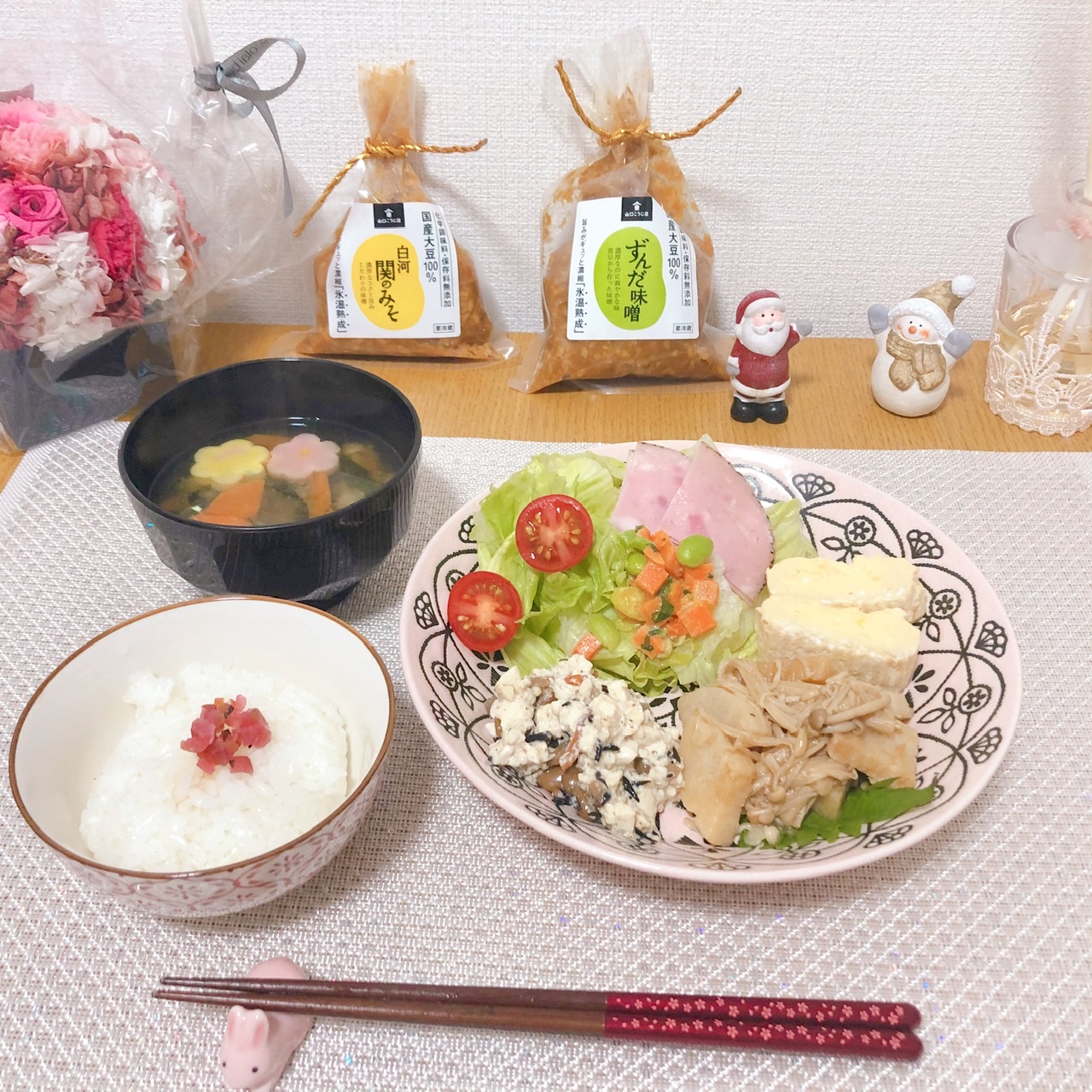 山口こうじ店 様の、白河関の味噌を使ってお味噌汁にしました✨和食のワンプレートに合わせました。
