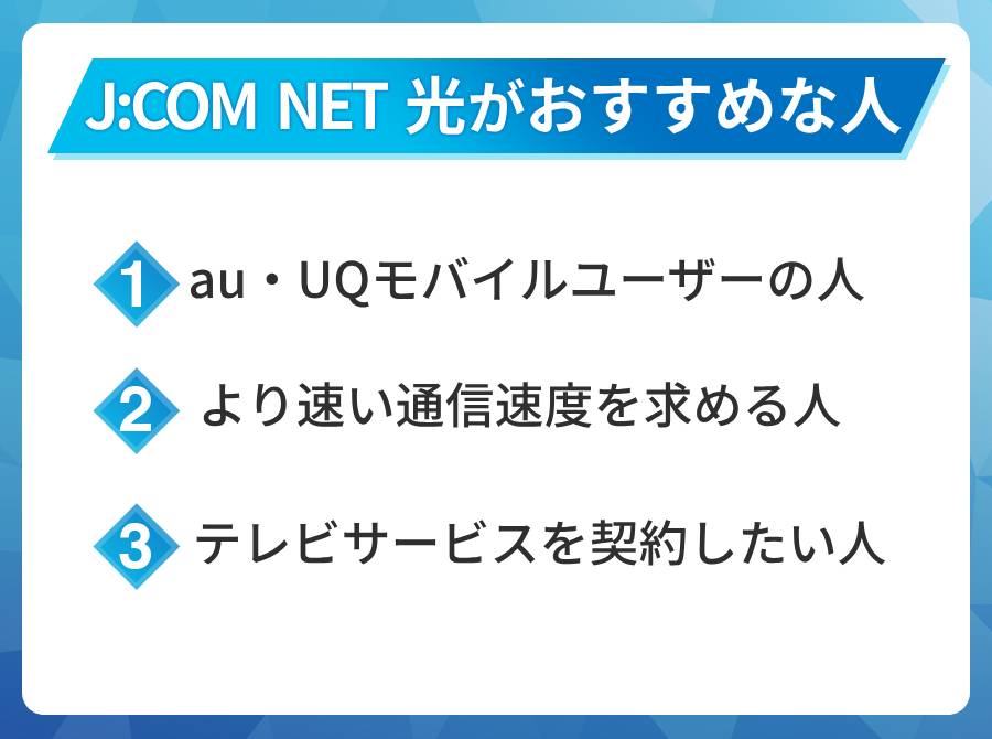 これまでの情報をもとに、J:COM NET 光がおすすめな人について解説していきます。
