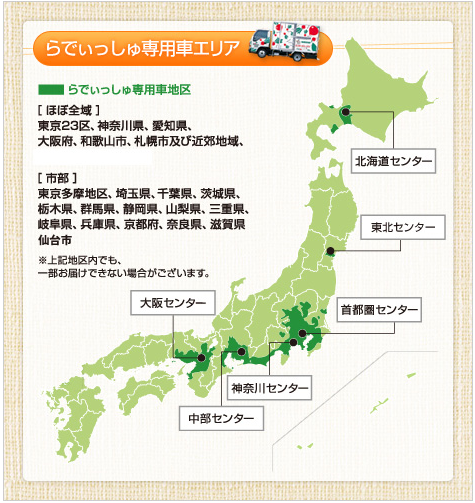自社便エリアに住んでいる場合は、らでぃっしゅぼーや専用車での配達を選ぶことができます。