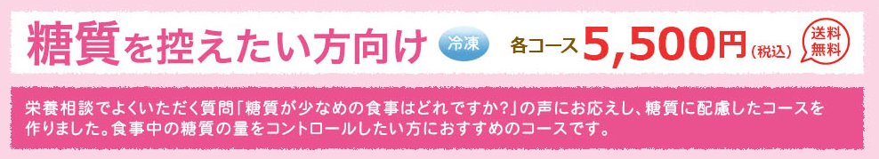 糖質・塩分・脂質・たんぱく質の制限別に各6コースずつ用意されています。