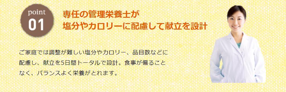 塩分やカロリーを専任の管理栄養士が管理!バランスのいい食事が摂れる