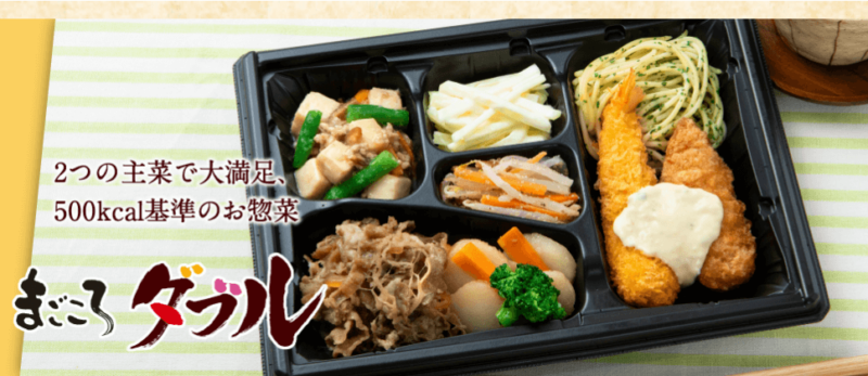 まごころダブルは、お惣菜がたっぷり入ったお弁当です。