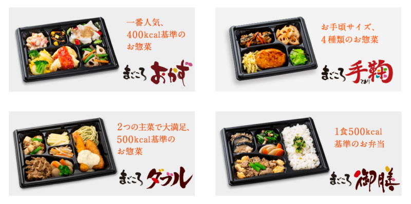 「まごころおかず」などご高齢、闘病中の方にも配慮されたメニューがある